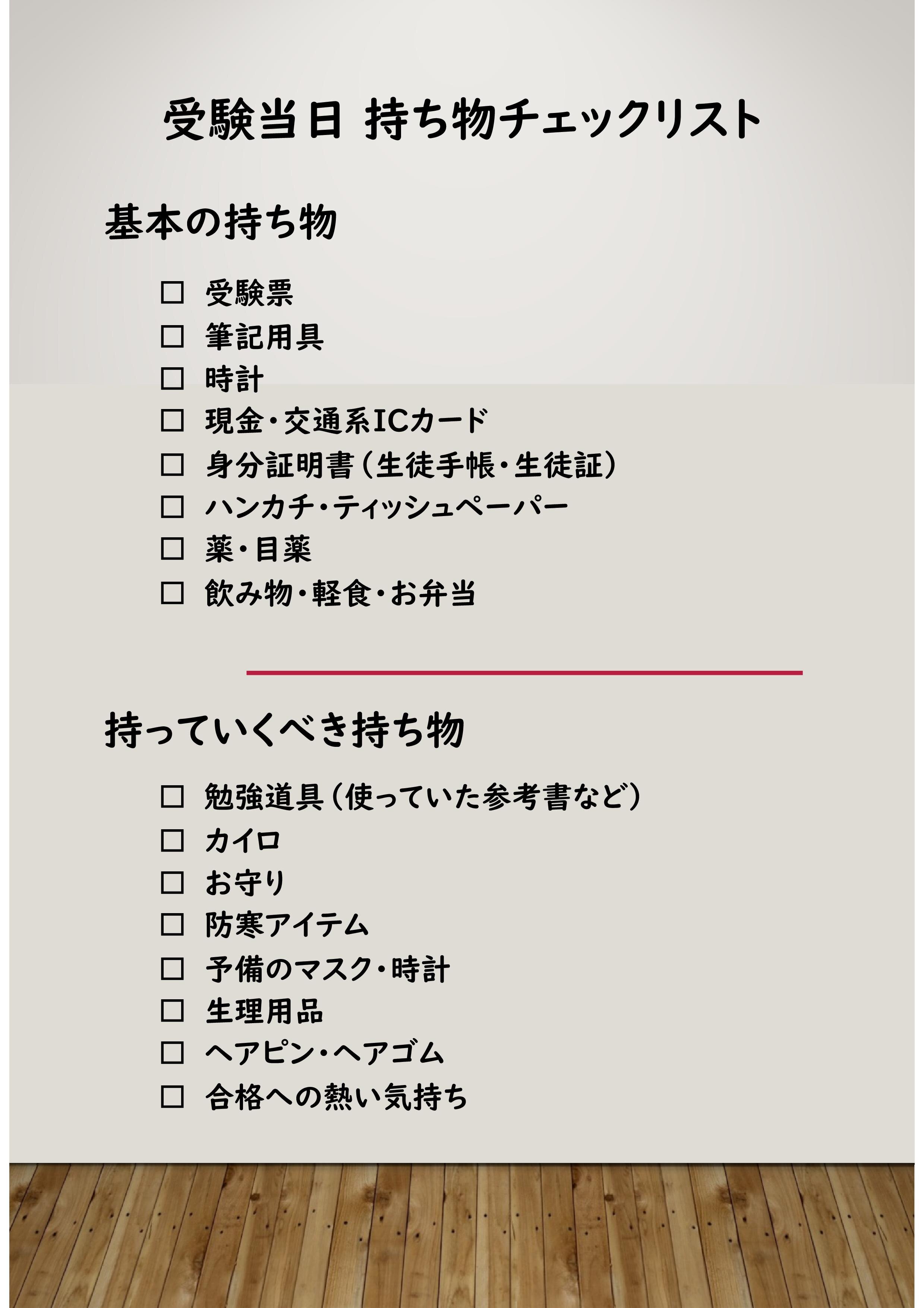 【持ち物チェックリスト】